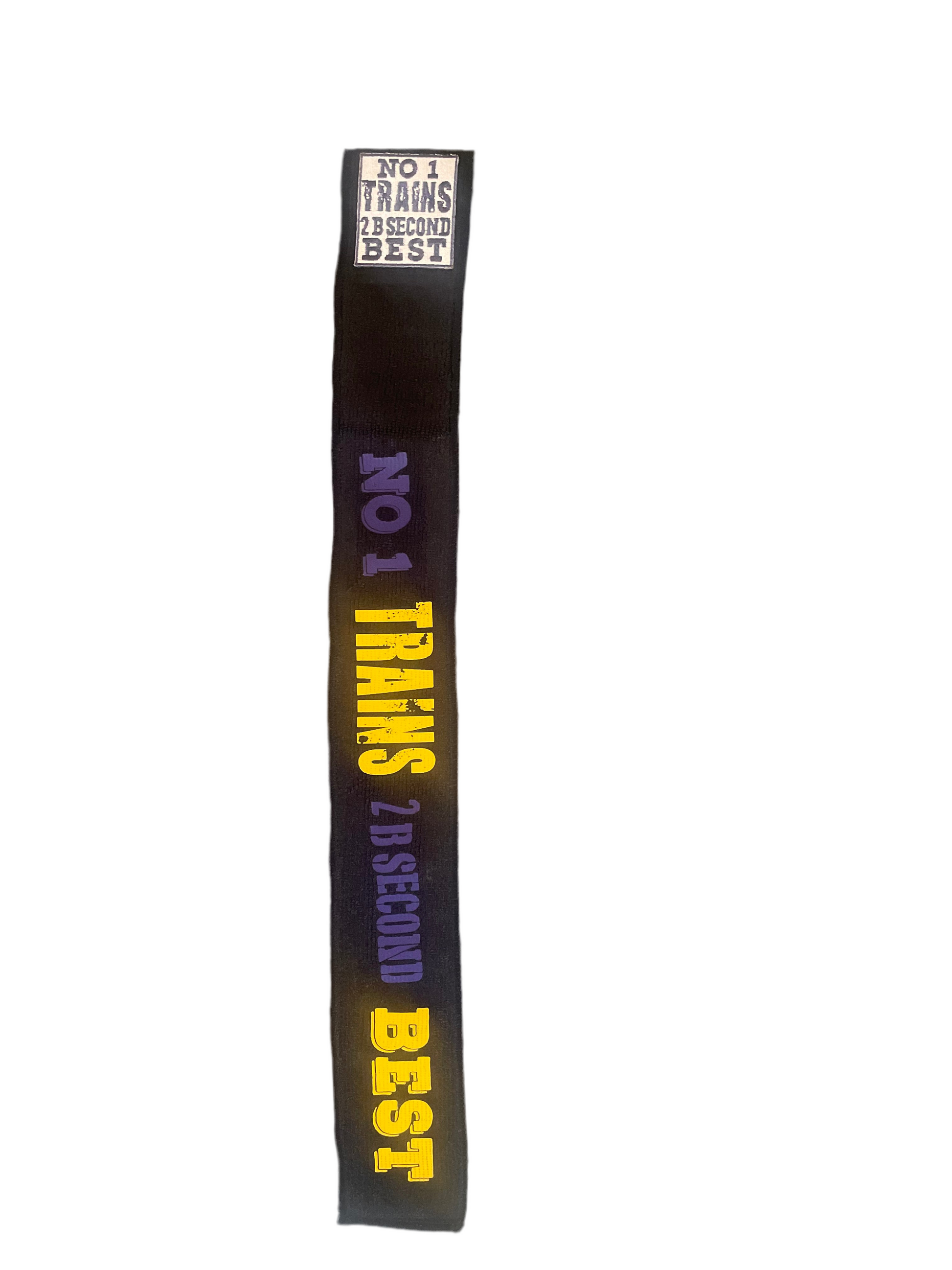 The No 1 Trains Athletic Towel is a must-have for any athlete. Featuring a bold black design with standout purple and yellow gold prints, this towel is not only functional but also a fashion statement on the field. Stay dry and stylish with this athletic towel.